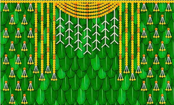 Green Traditional Varamahalakshmi Backdrop Cloth for Festival Decoration