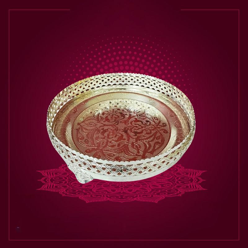 Get 10 inch heavy German silver tray for pooja & gifting. Elegant, long lasting & perfect for all conventional celebrations