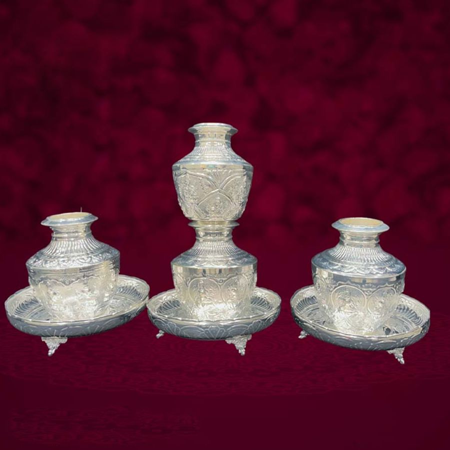 Shop 10” German Silver Lakshmi Plate & Binde, Ideal for pooja, gifting, or festive décor. Traditional hand made format