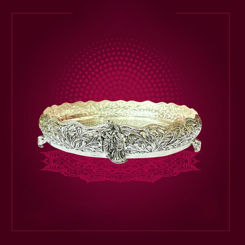 Celebrate divine love and spirituality with this magnificent 12‑inch Radha Krishna plate crafted in antique‑finish German silver. Ideal for pooja décor, altar display, or as a premium gift, this elegant piece combines tradition, art, and devotion.