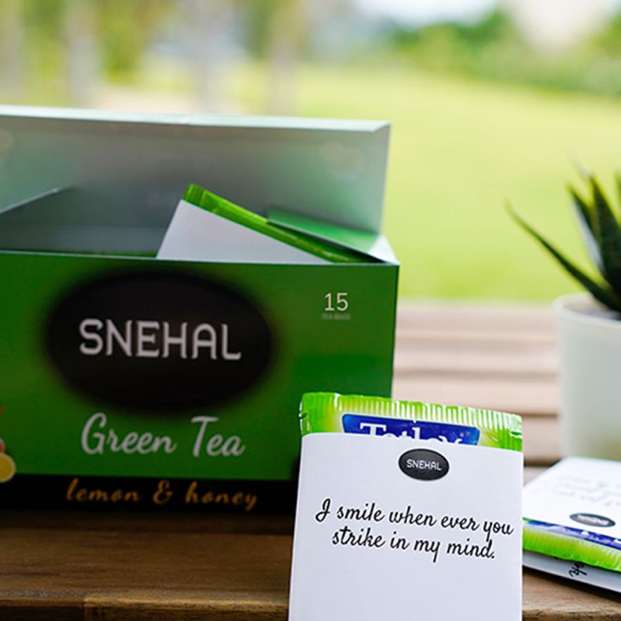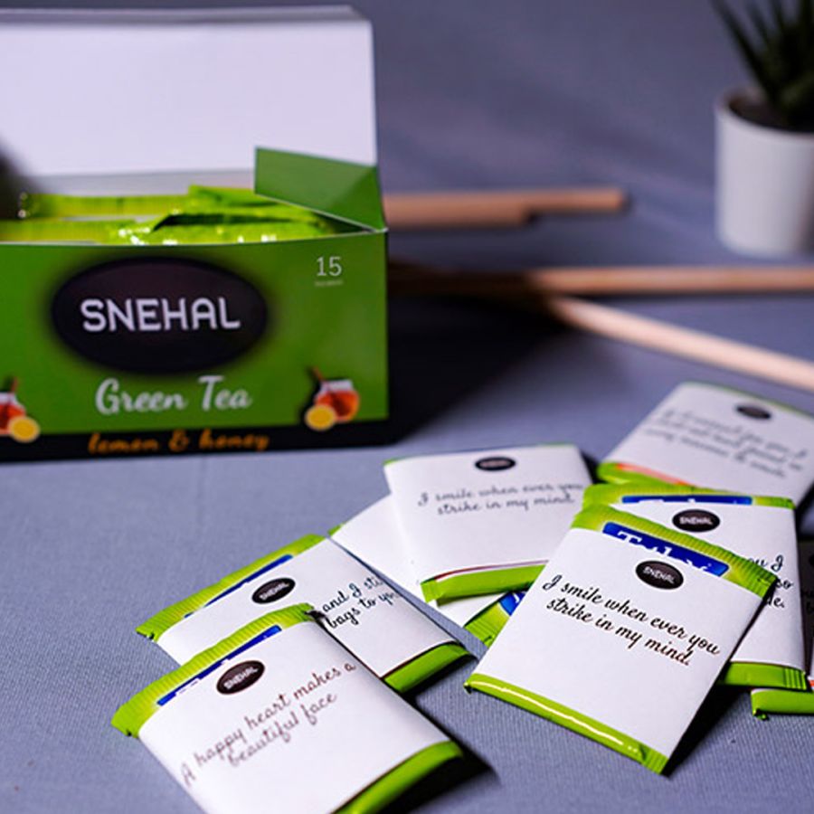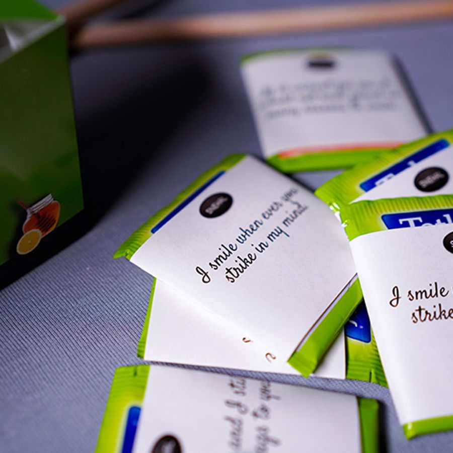 Each tea bag is wrapped in a note with a good morning message or any personal message