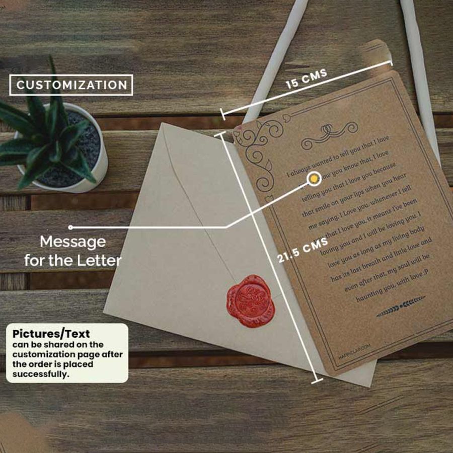 "A letter to your loved one is printed on a craft sheet wrapped around with a love-sealed brown envelope and text.
