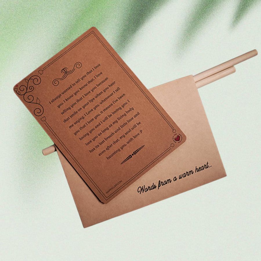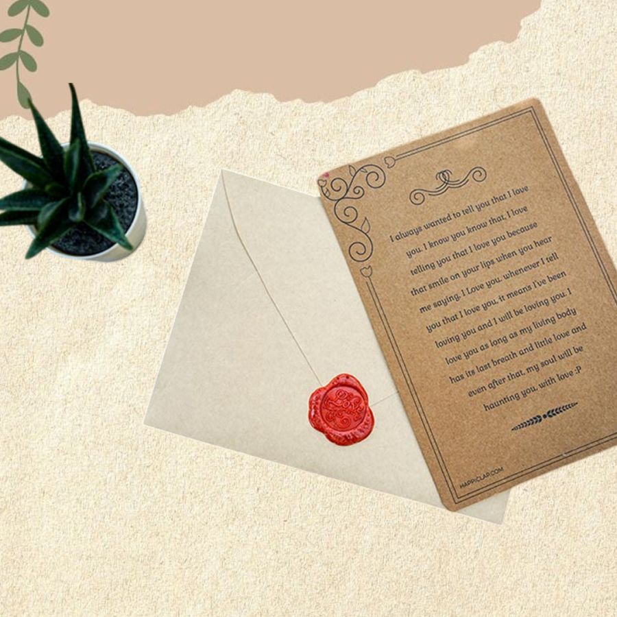 A letter to your loved one printed on a notable craft sheet wrapped around in a classy love-sealed brown envelope.