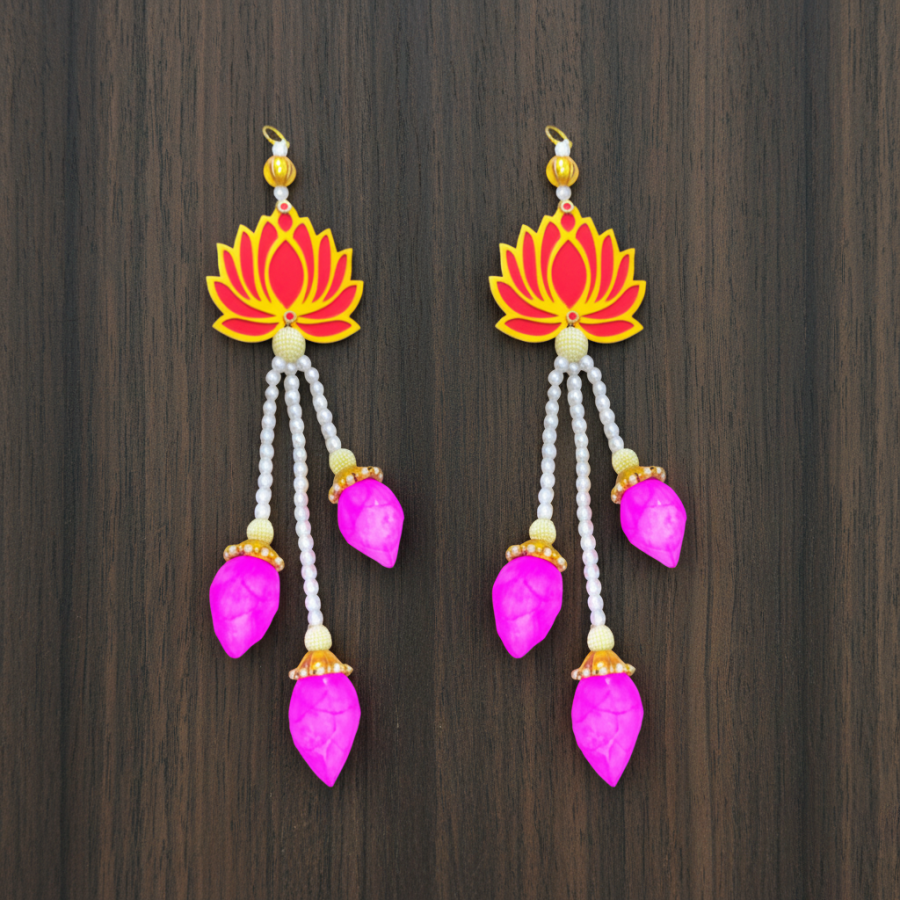 Add a touch of elegance and festivity to your pooja room, doorway or decor space with the “Lotus Buds Hangings with Pearl”. These artificial garlands feature delicate lotus‑bud designs enhanced with pearl accents, bringing the charm of fresh floral decor without the maintenance. Ideal for welcoming guests, decorating entrances, or enhancing your ritual space during festivals or ceremonies, this garland set is lightweight, reusable and styled to complement both traditional and modern interiors.