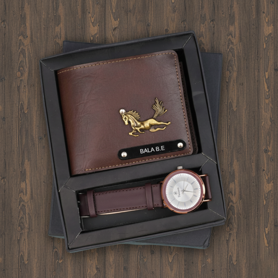 The Bangkok Leather Men’s Wallet and Wrist Watch Combo is the ultimate gift set for the modern man who appreciates style, function, and quality. This sophisticated set includes a premium leather wallet and a sleek wristwatch, both crafted to offer durability and timeless elegance. The wallet provides ample space for cards, cash, and IDs, while the stylish wristwatch adds the perfect finishing touch to any outfit. Whether it's for a special occasion, a birthday, or just because, this combo makes for an impressive gift that combines practicality with luxury.