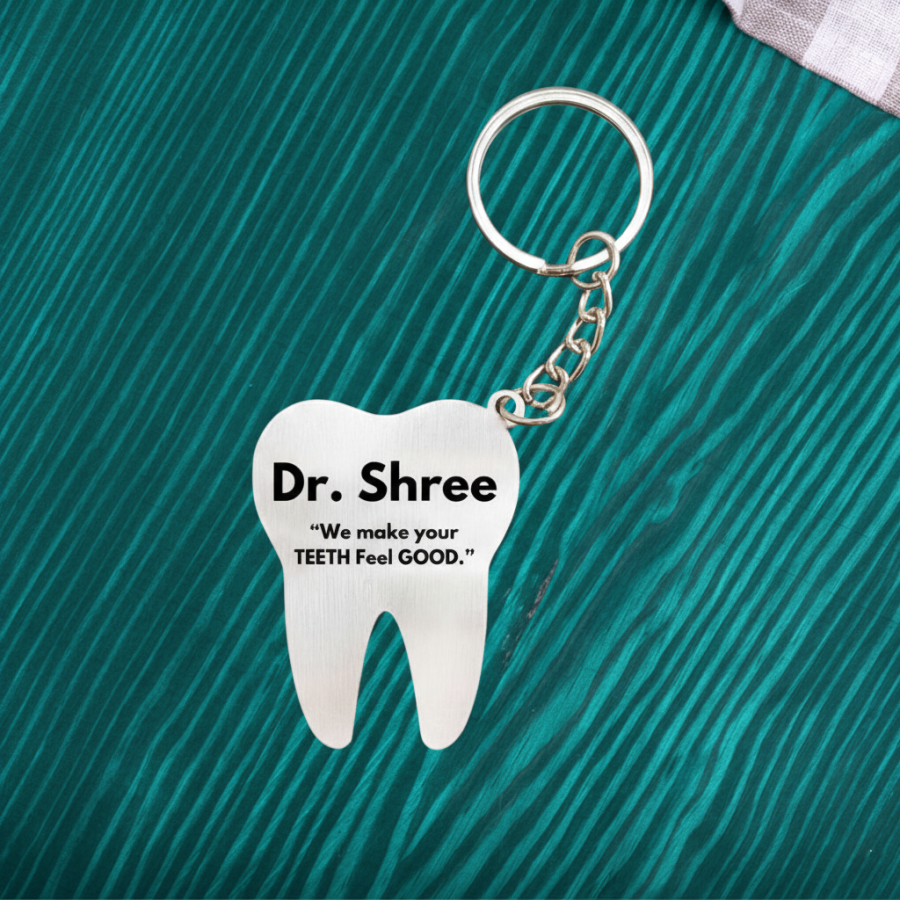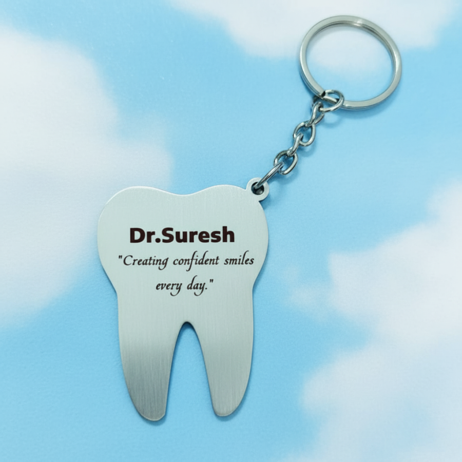 "Show your appreciation to the dental professional in your life with the Personalized Tooth Keychain—an ideal gift for dentists, dental assistants, or anyone working in the dental field. This unique and thoughtful gift combines functionality with a touch of humor and personalization. Crafted from high-quality materials, this keychain features a charming tooth design and can be engraved with a name or special message.