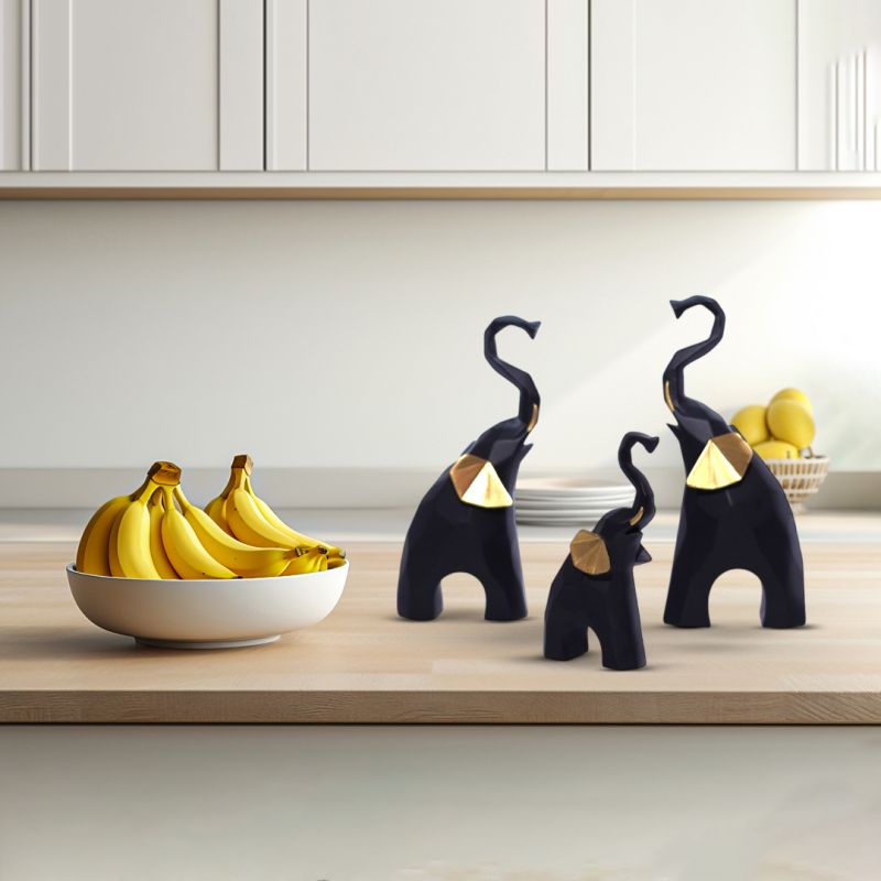 Enhance your living space with this charming Black Golden Eared Elephant Baby Set, a perfect blend of elegance and cultural symbolism. Featuring adorable baby elephants with striking golden ears against a sleek black finish, this decorative set adds a touch of luxury and warmth to any room. Elephants are revered symbols of strength, wisdom, and good fortune, making this set both meaningful and stylish.