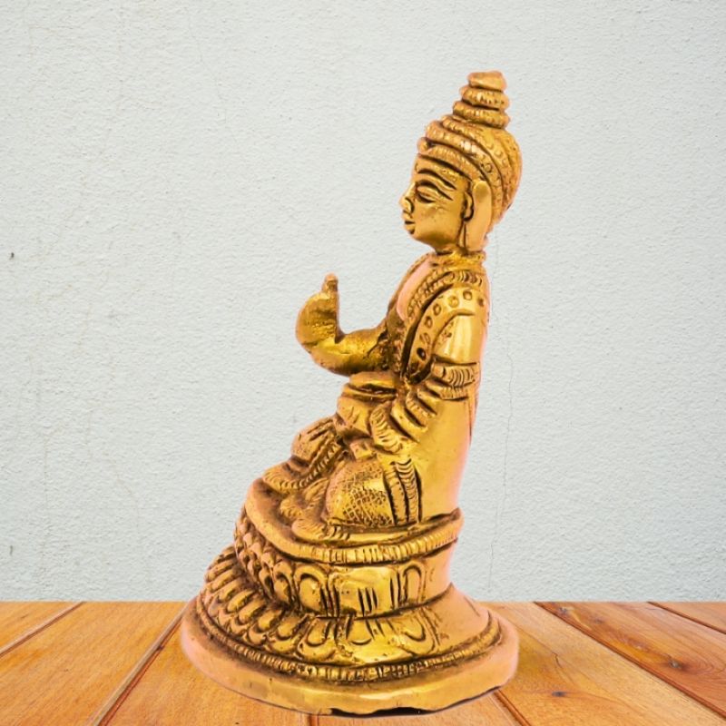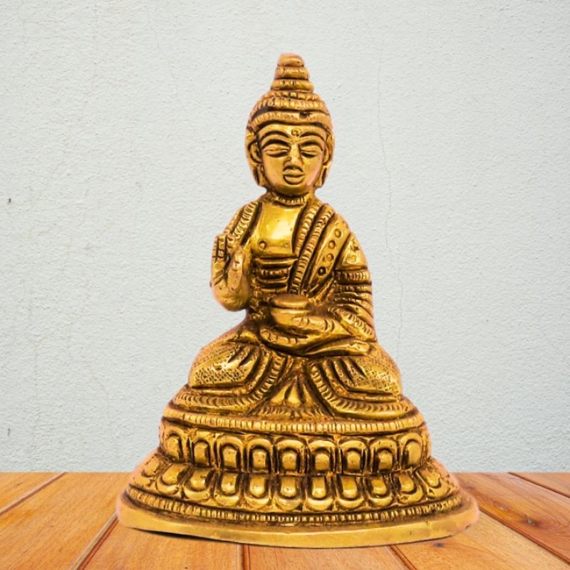 Infuse your living space with serenity and spiritual elegance through this meticulously handcrafted Brass Buddha Idol. Depicting Lord Buddha in the Abhaya Mudra—an ancient gesture symbolizing fearlessness and protection—this statue serves as a powerful reminder of inner peace and divine blessings. Its antique finish and intricate detailing make it a timeless addition to any home or office decor.