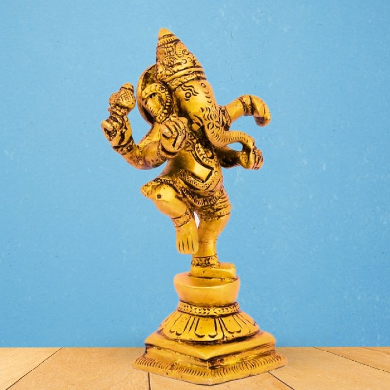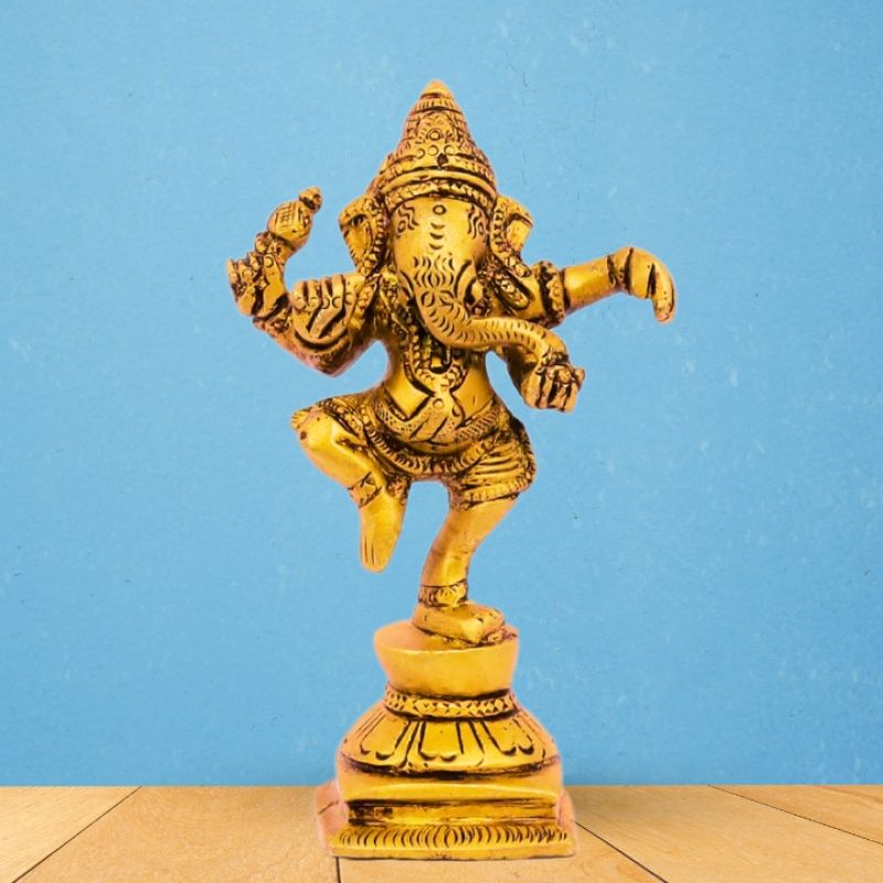 Brass Divine Lord Dancing Ganesha idol for Home Decorative Showpiece