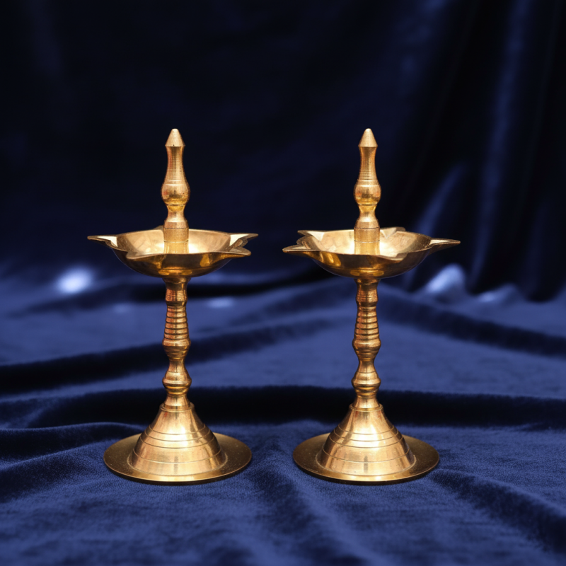 Brass Diya With Stand Set Traditional Pooja Lamp