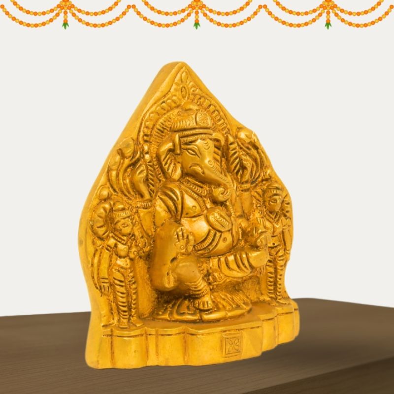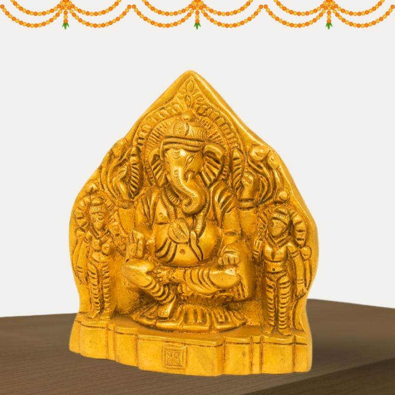 Brass Ganapathi with Riddhi Siddhi Idol Statue for Home Pooja
