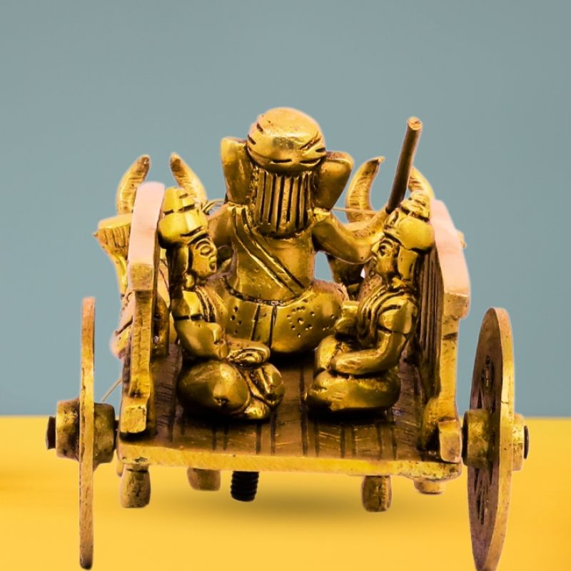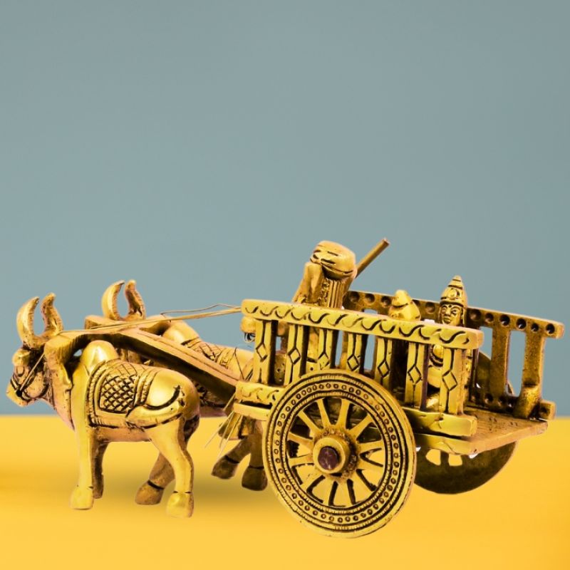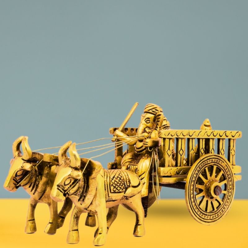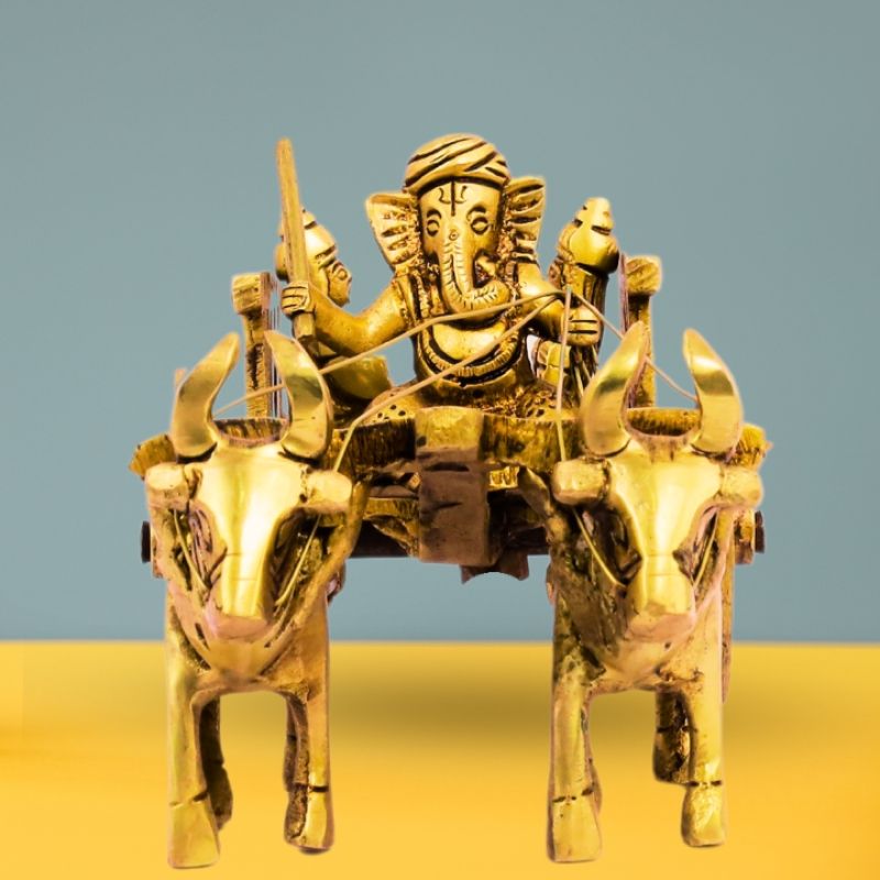Brass Ganesh Lakshmi Saraswathi Bullock Cart for Home Decor