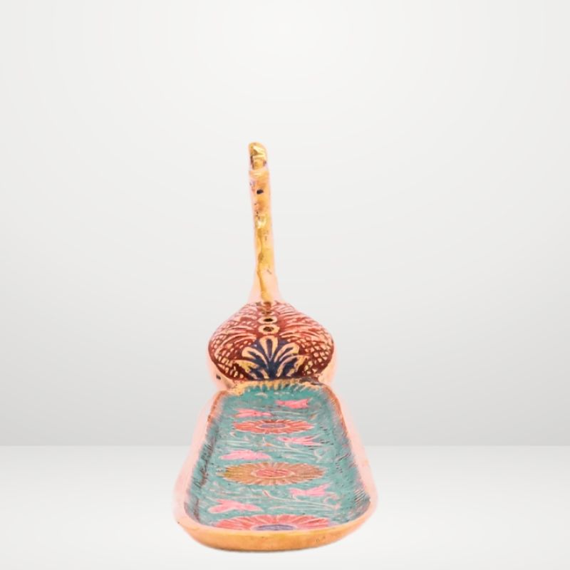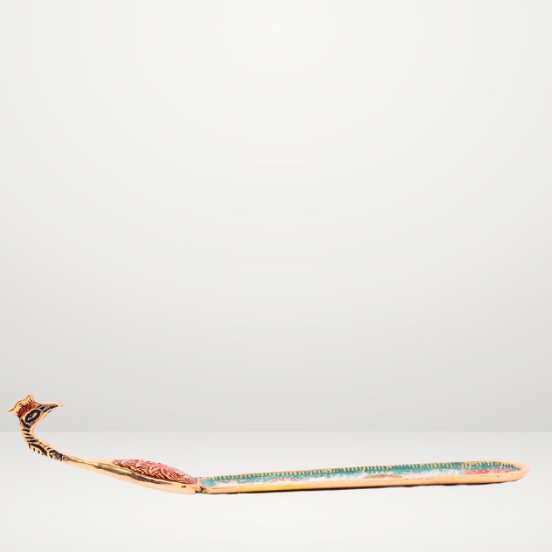 Elevate your spiritual rituals with this exquisite handcrafted brass agarbatti stand, designed in the elegant shape of a peacock. Symbolizing grace and beauty, the peacock adds a touch of traditional artistry to your pooja room.