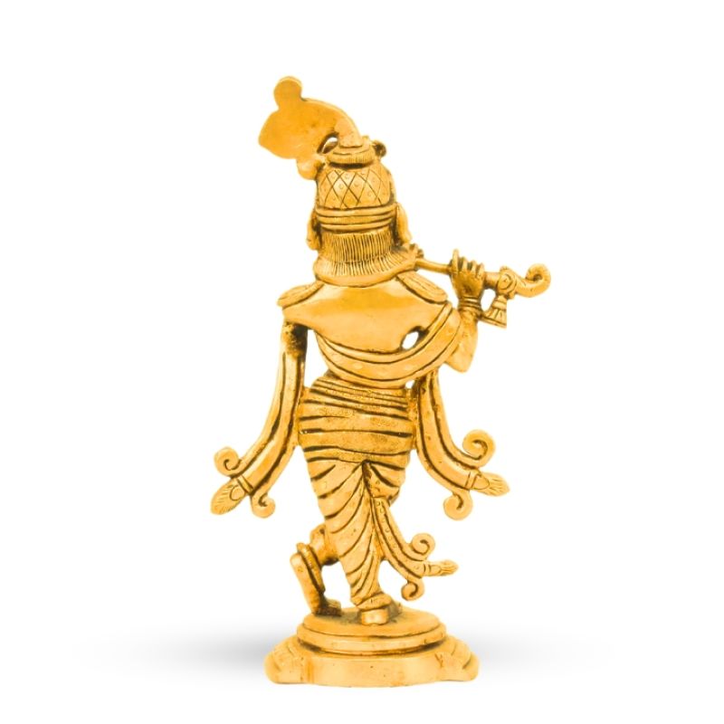 The Brass Krishna Idol Handicraft for Pooja is a beautifully crafted representation of Lord Krishna, revered as the deity of love, compassion, and divine wisdom. Made from high-quality brass, this idol features intricate detailing that captures the serene and playful essence of Krishna, often depicted playing his divine flute. This handcrafted piece is ideal for placement in pooja rooms, home temples, or as a spiritual accent in your living space.
