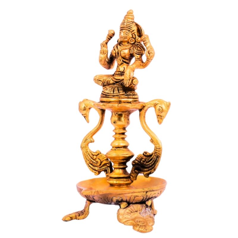 Illuminate your home with divine radiance using the Brass Lakshmi Diya with Peacock – a stunning handcrafted piece that beautifully combines traditional art with spiritual symbolism. Featuring Goddess Lakshmi, the deity of wealth and prosperity, and an intricately designed peacock symbolizing grace and beauty, this diya is ideal for pooja rooms, festive decor, and as a heartfelt gift for loved ones.