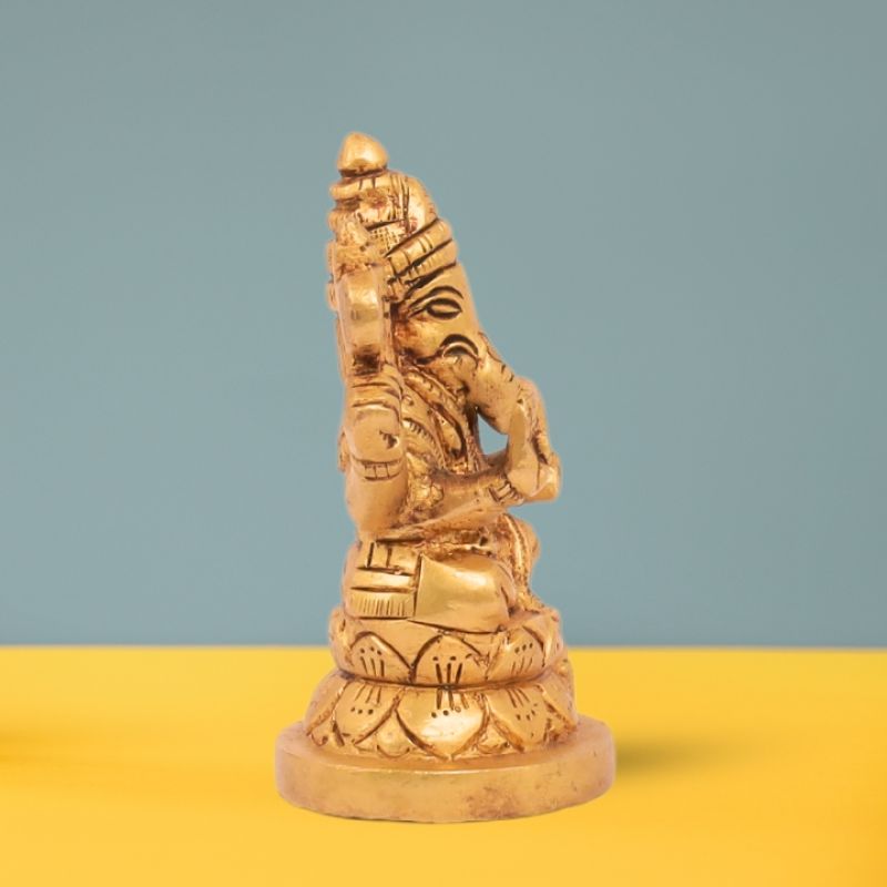 A Brass Lord Ganesha, the beloved remover of obstacles and harbinger of wisdom, success, and good fortune, is a revered deity in Hinduism. His divine presence is not just confined to temples and pooja rooms but also extends to homes, offices, and even vehicles, where he is believed to bring prosperity, protection, and positive energy.