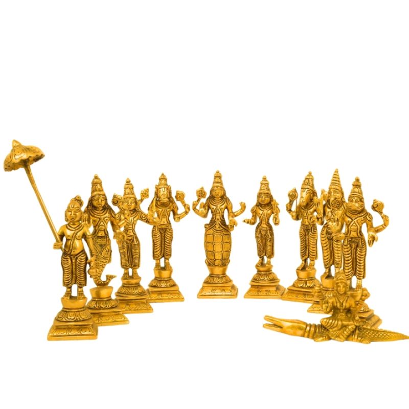 Brass Lord Vishnu Dasavatharam Idols for Home and Office Decor