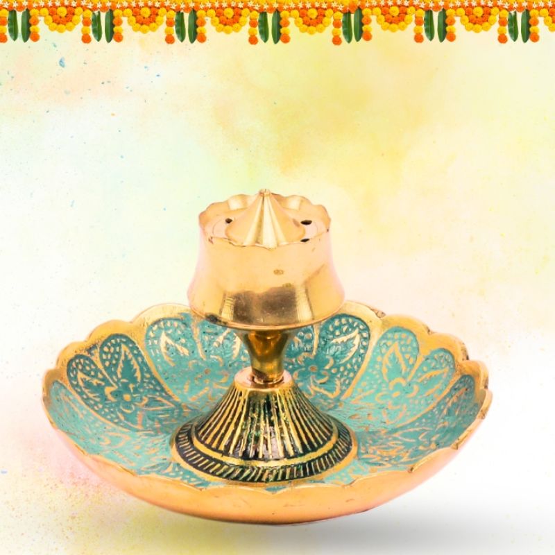 Brass Multicolour Agarbatti Stand with Center Dhoop Holder for Home