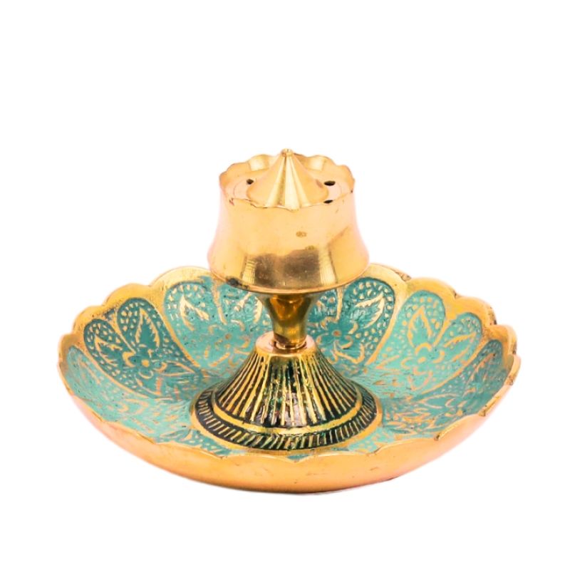 Elevate your daily rituals with this beautifully designed Brass Multicolour Agarbatti Stand, featuring a center dhoop holder. This elegant and functional stand is perfect for adding a touch of tradition and color to your home pooja space, meditation corner, or altar.