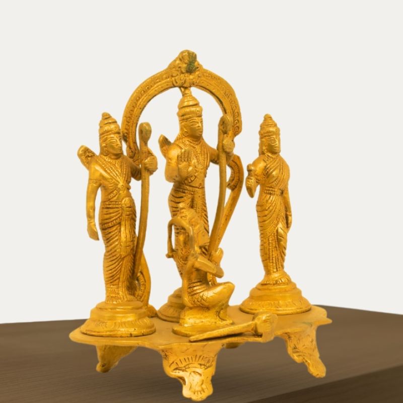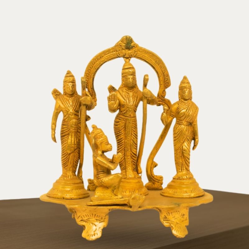 Brass Ram Darbar Statue - Lord Rama,Sita,Lakshman,Hanuman Statue for Temple