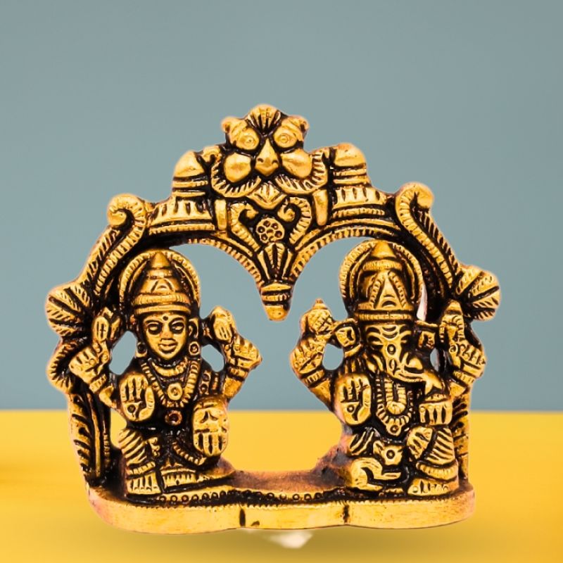 Brass Sri Lakshmi Ganesha Sitting Idol for Home Pooja, Office and Temple