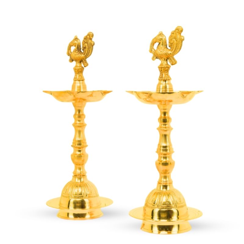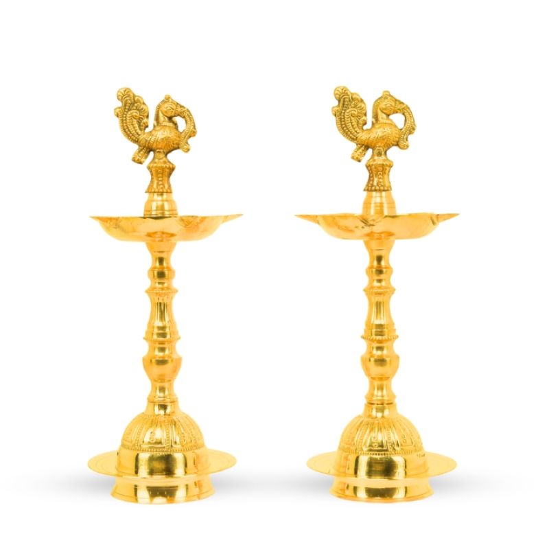 Brass Traditional Peacock Diya for Home Pooja/Temple Medium Size (Set 0f 2)