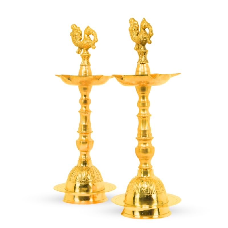 Brass Traditional Peacock Diya for Home Pooja/Temple (Set 0f 2)