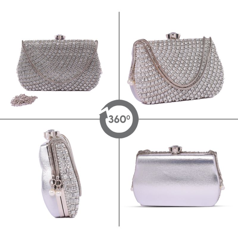 Bright Diamond Clutch Natural Grey Sling Bag for Women