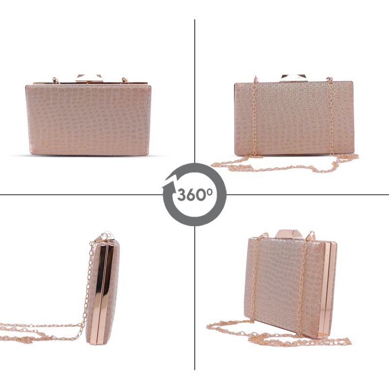 Classic Reddish Grey Box Clutch with Chain Shoulder Box for Girls and Women