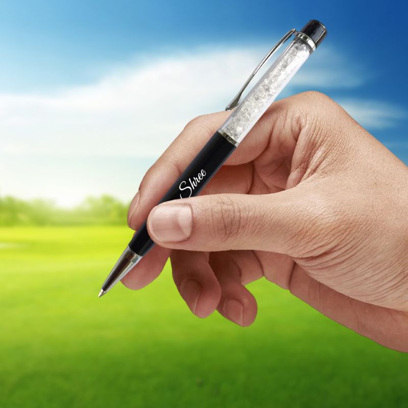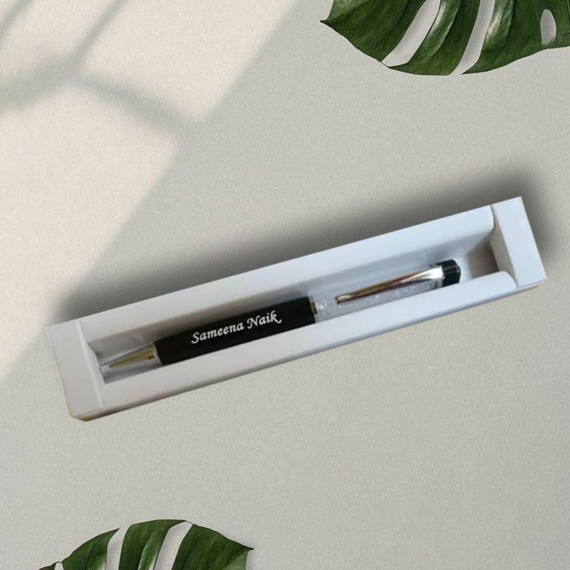 Crystal‑Accented Personalized Metal Pen – Custom Name Engraving
