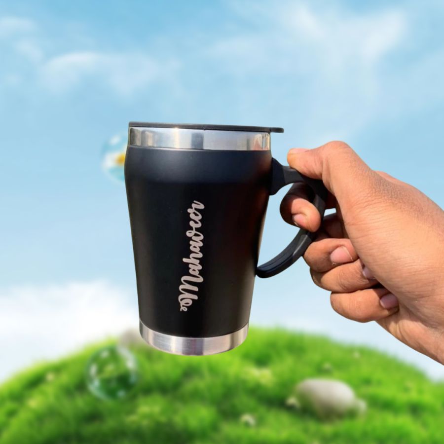 Customizable Travel Mug with Name Engraving and Spill-Proof Lid