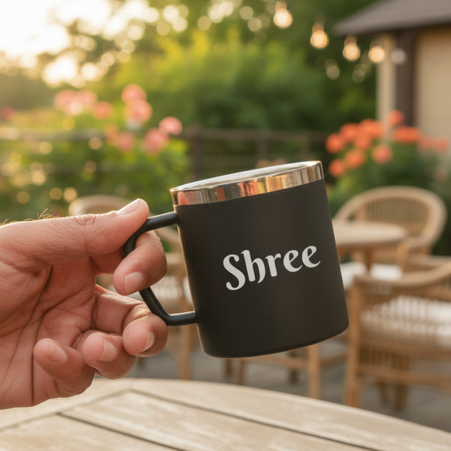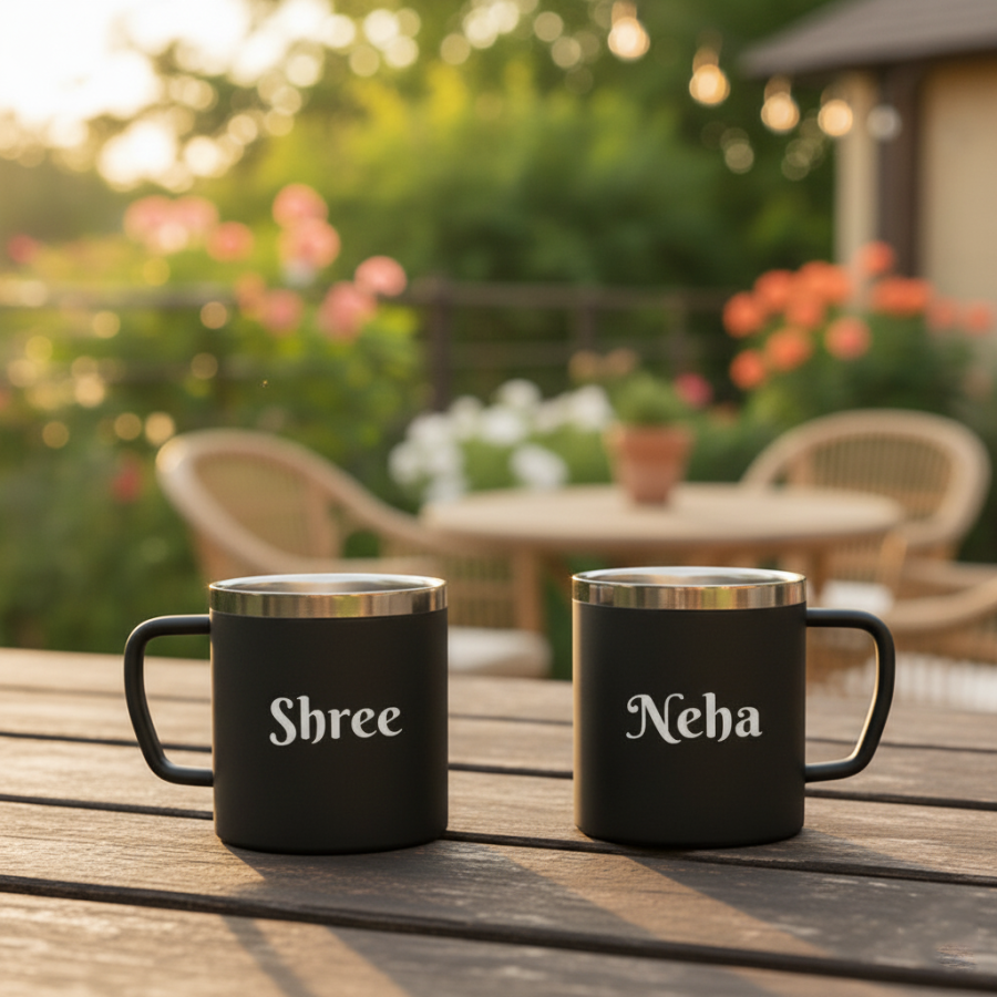 The Customized Black Steel Mug is the perfect gift for any occasion. Crafted from premium stainless steel, this sleek black mug can be personalized with names, logos, or messages to make it uniquely yours. Whether you're gifting it to a loved one or adding a personal touch to your morning coffee routine, this durable and stylish mug is both practical and thoughtful. Its elegant design and custom touch make it a perfect gift for birthdays, anniversaries, corporate giveaways, or just because. The black finish adds a sophisticated look, while the steel construction ensures long-lasting durability.