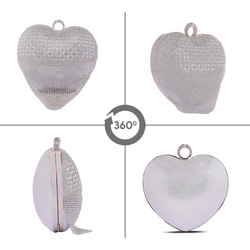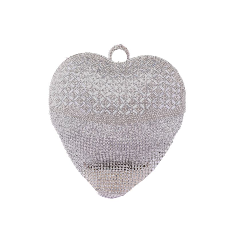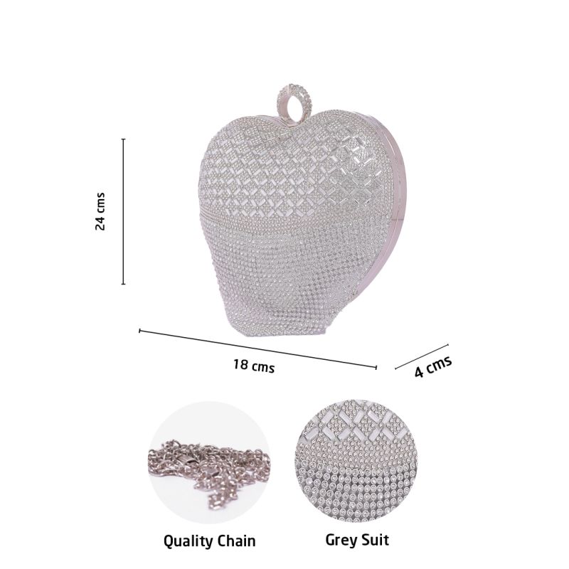 The Cute Heart Shape Crystal Diamond Grey Suit Clutch Purse is a charming and elegant accessory designed for women who love fashionable and eye-catching handbags. Featuring a unique heart shape, dazzling crystal diamond embellishments, and a sophisticated grey tone, this clutch is perfect for parties, weddings, date nights, and special occasions.