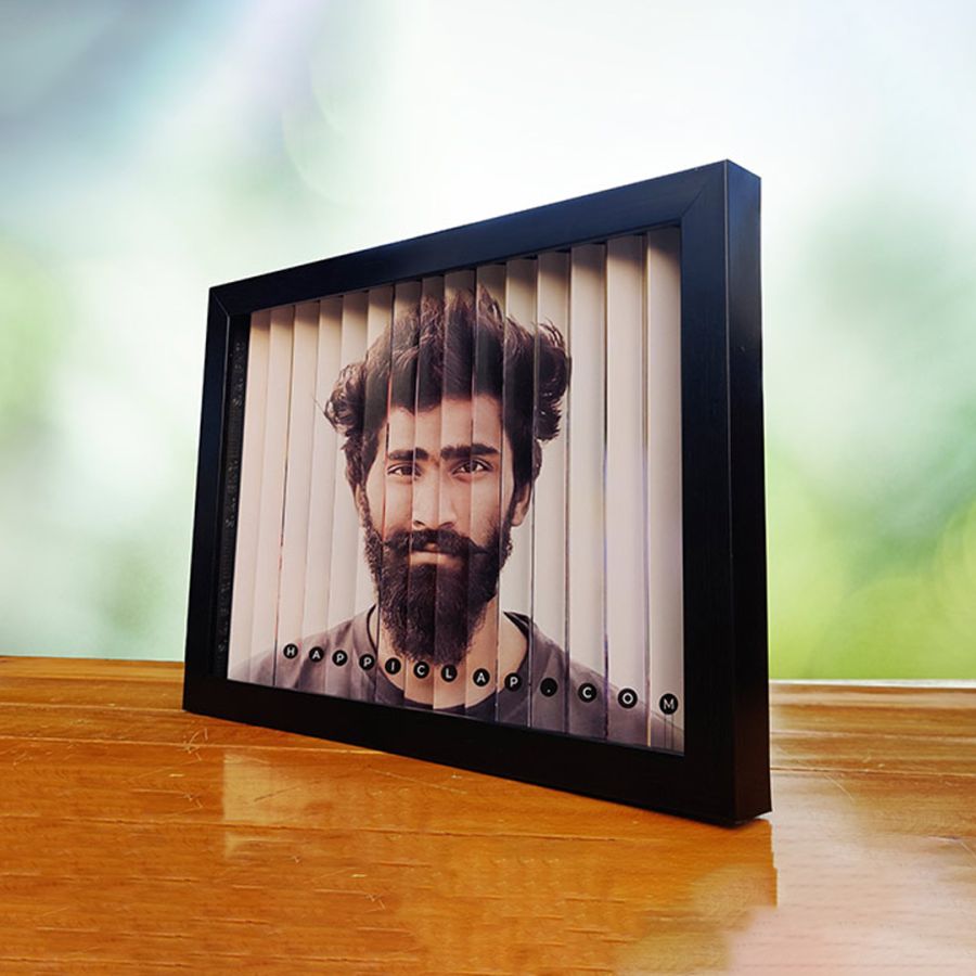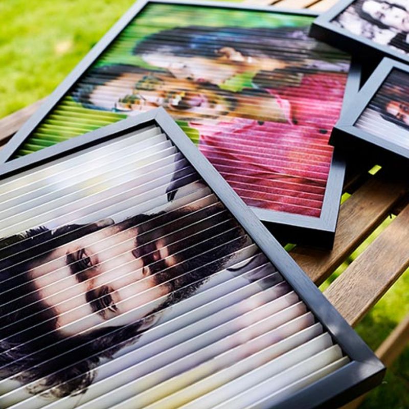 This tricky photo frame has one picture in the display when seen from the right and the other photo when seen from the left.