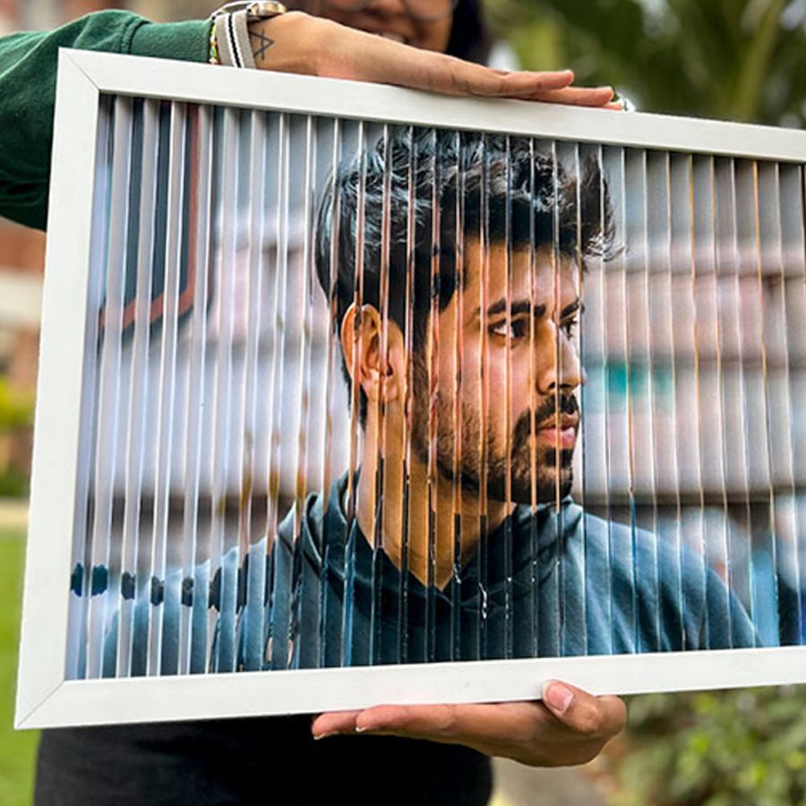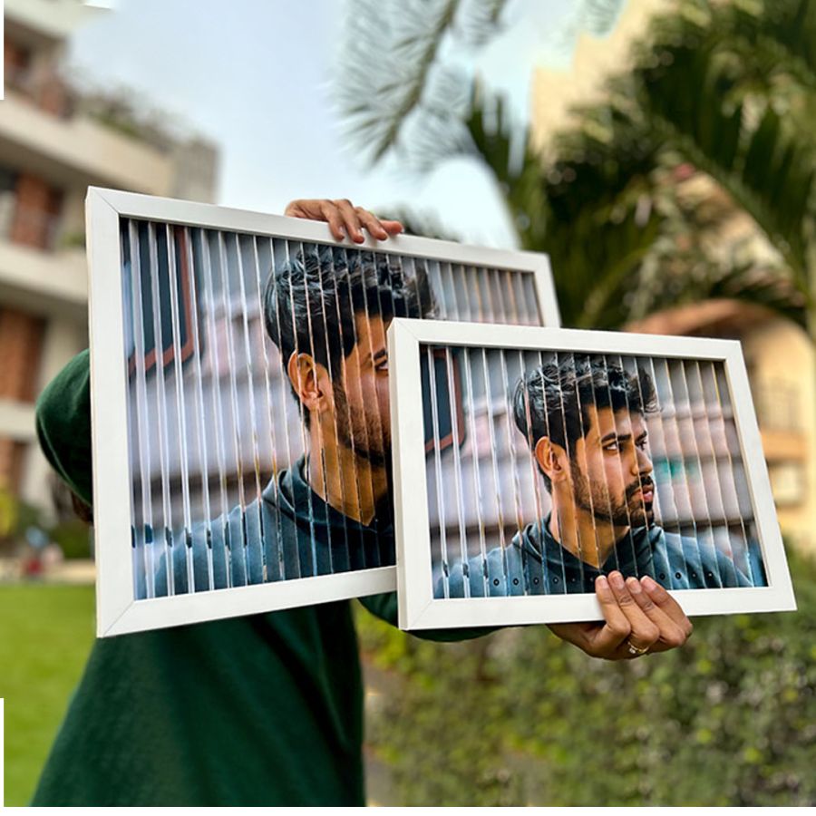 This tricky photo frame has one picture in the display when seen from the right and the other photo when seen from the left.