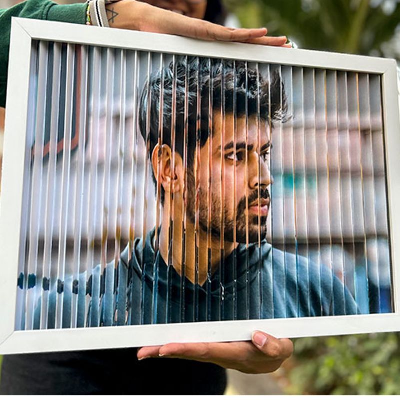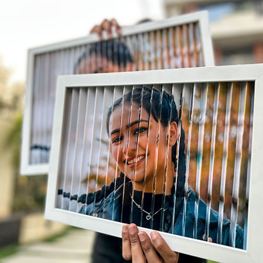 This tricky photo frame has one picture in the display when seen from the right and the other photo when seen from the left.