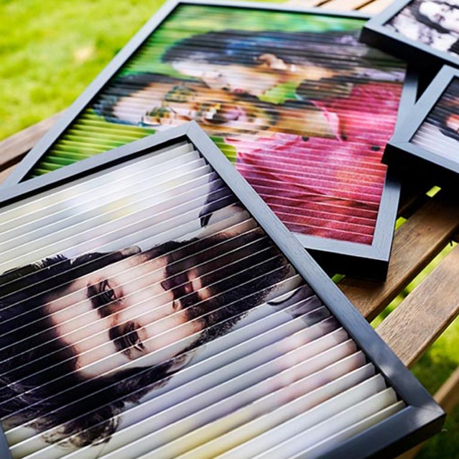 This tricky photo frame has one picture in the display when seen from the right and the other photo when seen from the left.