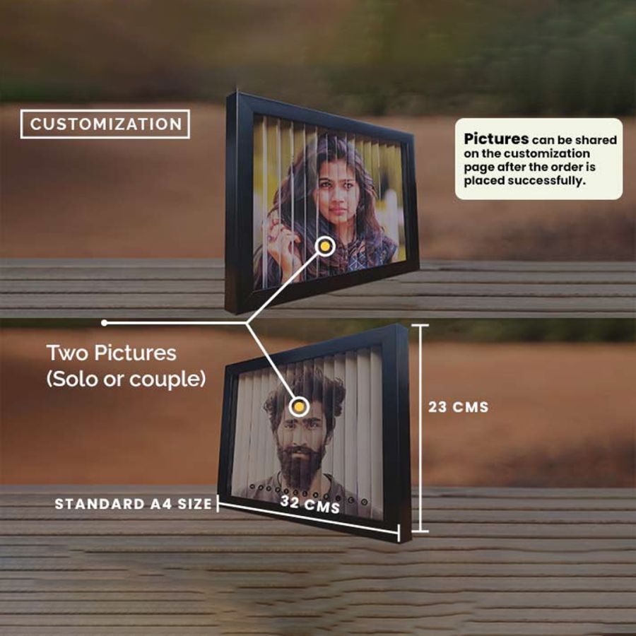 "Dual-view Photo frame with two pictures on either side, making a simple illusion.