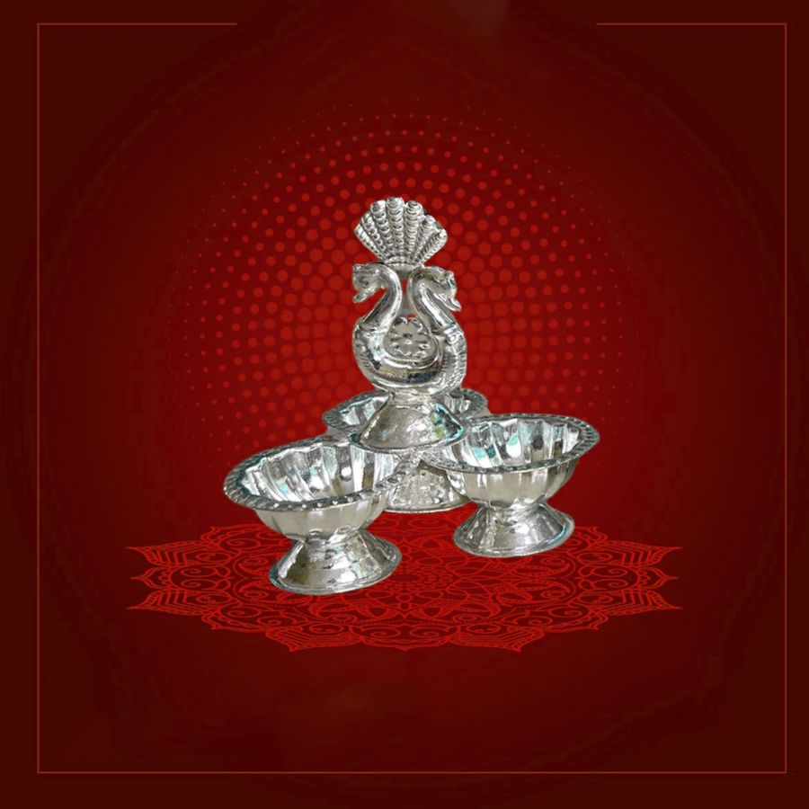 Buy German Silver three Cup Panchwala (10 Pcs). Premium pooja set in German silver objects—best for rituals, festivals & and gifting