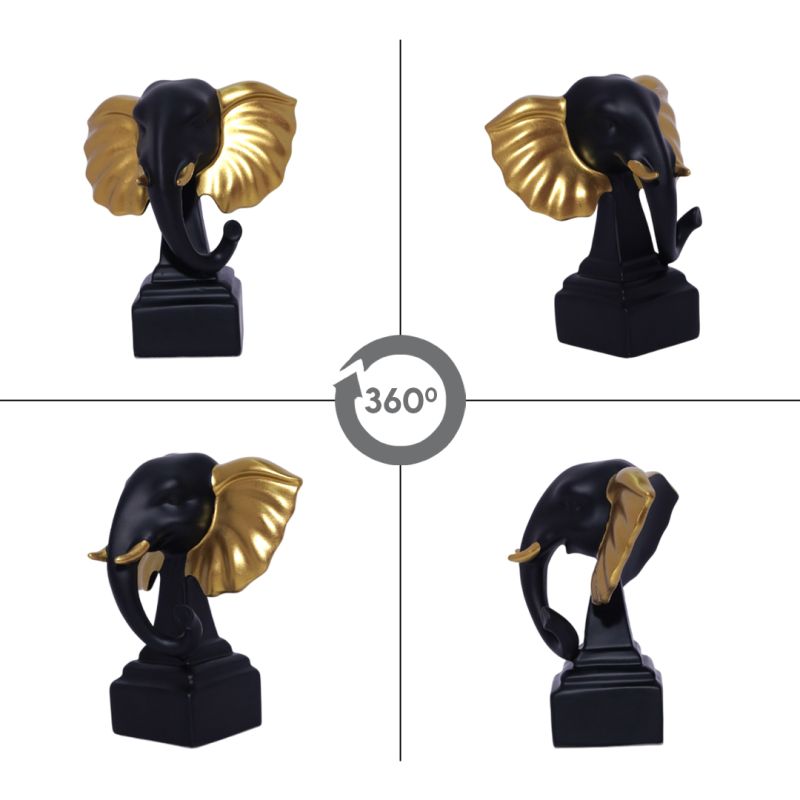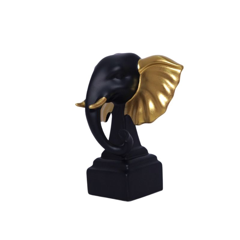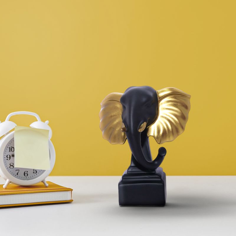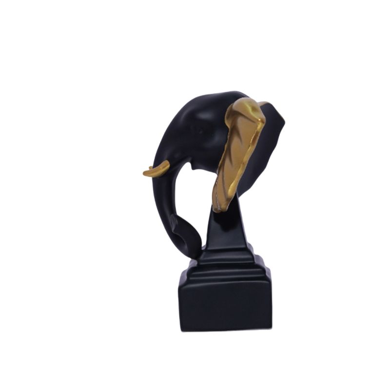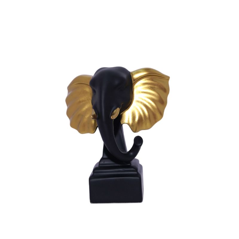 "Bring a sense of strength, wisdom, and prosperity into your home with this stunning Elephant Head Figurine, featuring a bold design with black and gold-toned ears for a luxurious, modern finish.