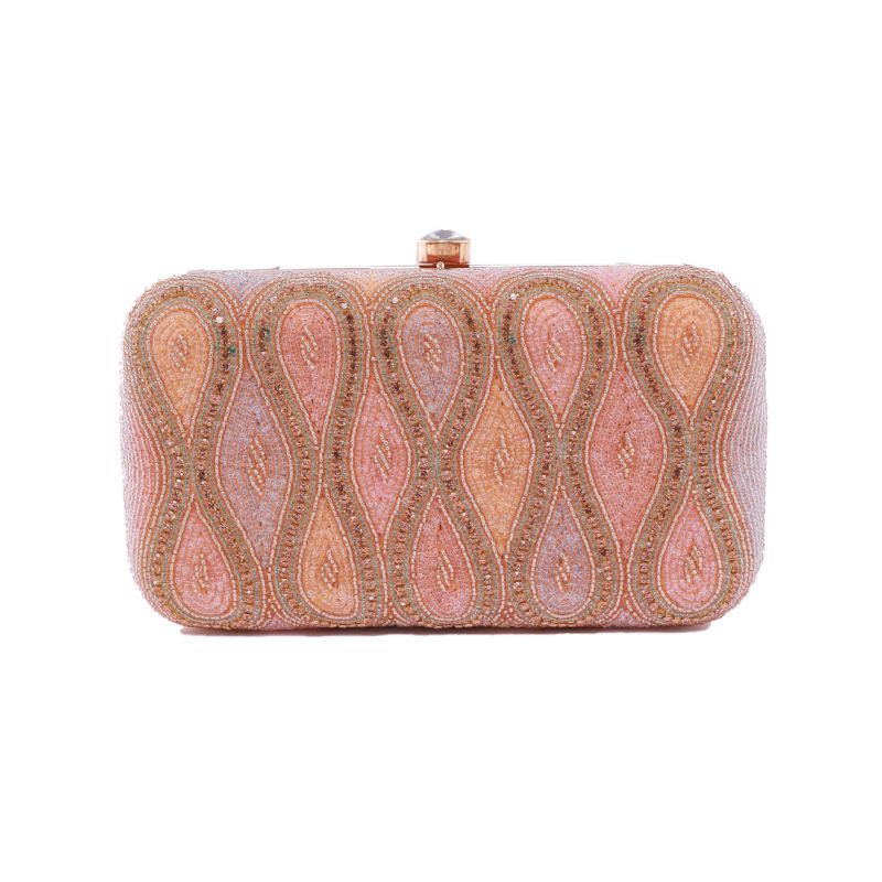 An embellished clutch purse is a symbol of sophistication and luxury. The combination of Greyish Pink and gold hues adds a rich, opulent touch to any ensemble, making it an ideal choice for women who love stylish yet functional accessories.