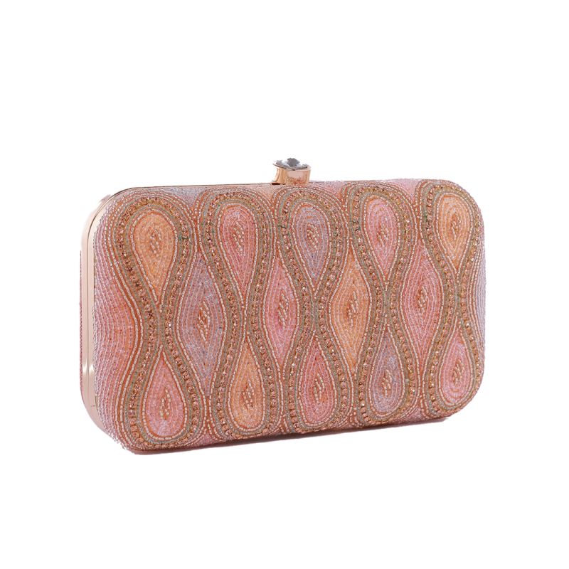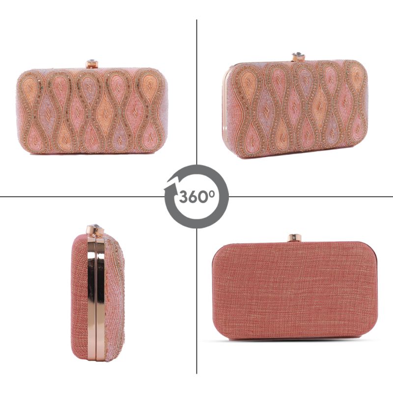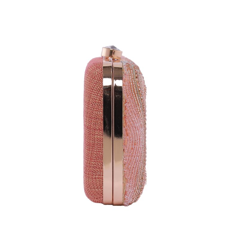 Embellished Greyish Pink Gold Clutch Purses for Women