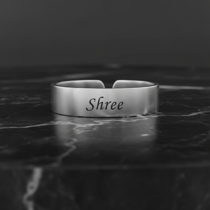 The Engraved Name Silver Ring is a personalized accessory that adds a unique touch to your style. Crafted from high-quality stainless steel, this ring offers durability and a sleek appearance. It features an adjustable design, making it suitable for various finger sizes. The ring can be engraved with a name or word of your choice, allowing you to carry a personal message wherever you go.