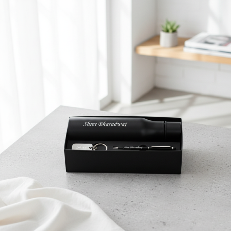 The Executive Essentials Personalized Corporate Gift Set is the perfect way to impress clients, colleagues, or business partners with a sophisticated and personalized gift. This set includes high-end, carefully selected items like a personalized pen, leather wallet, and other premium accessories, all customized with names, initials, or business logos. Whether it’s for corporate events, employee appreciation, or business gifts, this gift set combines practicality with elegance, leaving a lasting impression. Crafted with quality and designed for the modern professional, it's an ideal choice for anyone who appreciates fine details.