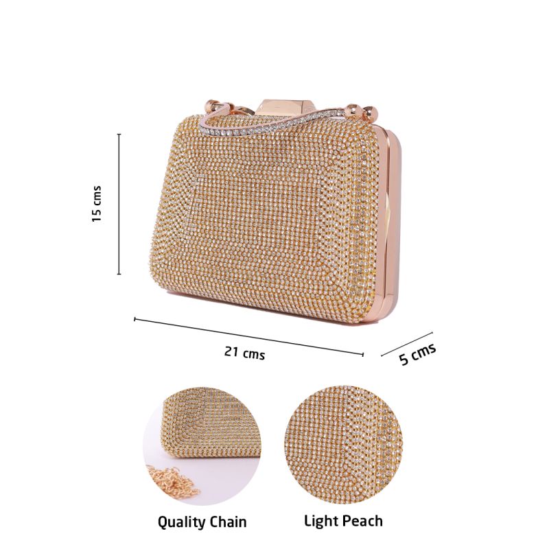 Fancy Crystal Diamond Purse Light Peach Sling Bag for Women