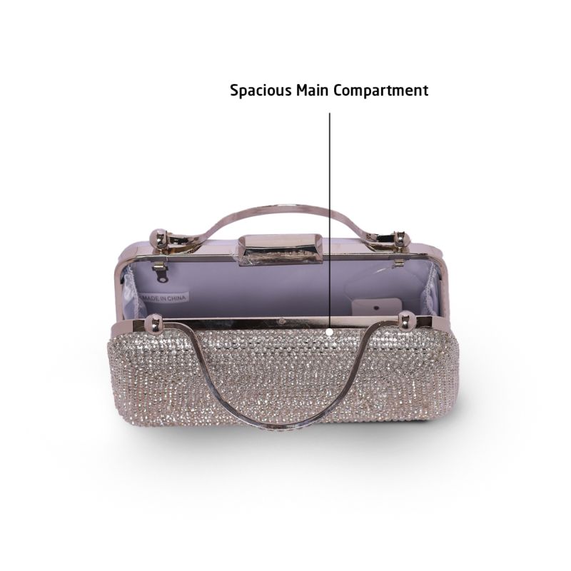 The Fancy Crystal Diamond Purse Regent Grey Sling Bag for Women is a perfect choice. Inspired by the natural beauty of seashells, this exquisite crystal-embellished purse adds a touch of elegance, sophistication, and uniqueness to any outfit. Whether you’re heading to a wedding, a high-end party, or a formal evening event, this Regent Grey-shaped crystal purse will make you stand out with its dazzling sparkle design.