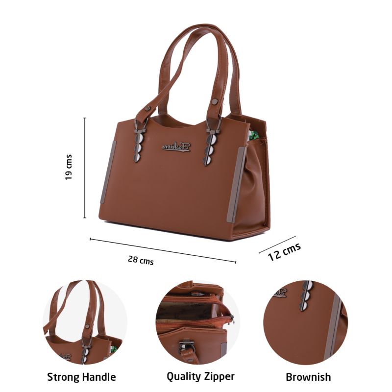 A fashion synthetic leather Brownish handbag is a must-have accessory for every modern woman. Its neutral shade, versatile design, and durable material make it the perfect companion for work, casual outings, and evening events.