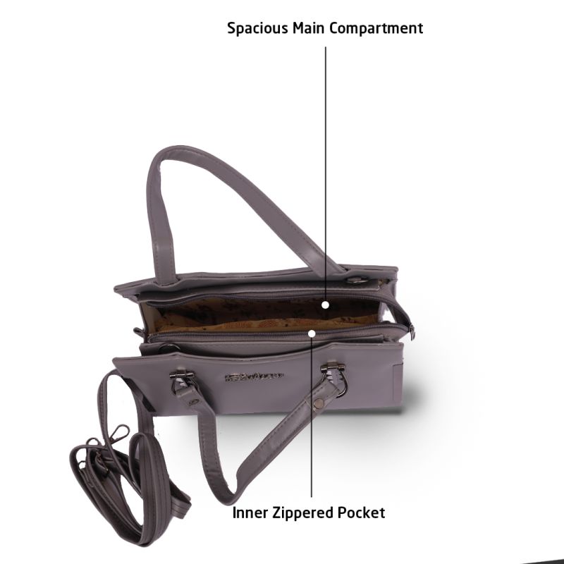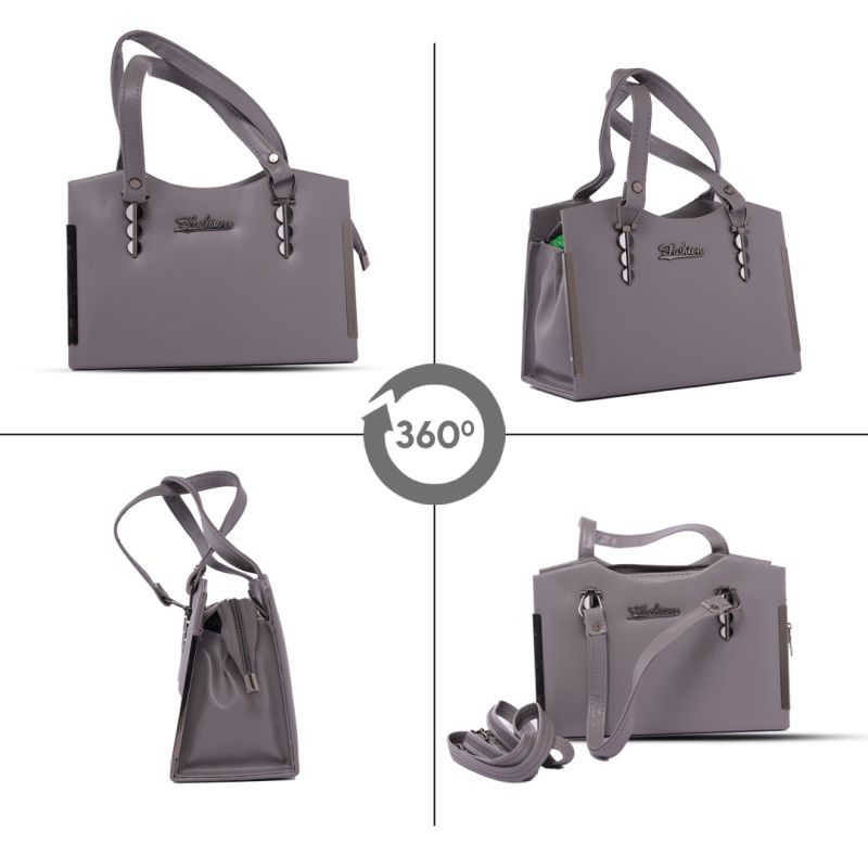 A fashion synthetic leather smokey grey handbag is a must-have accessory for every modern woman. Its neutral shade, versatile design, and durable material make it the perfect companion for work, casual outings, and evening events.