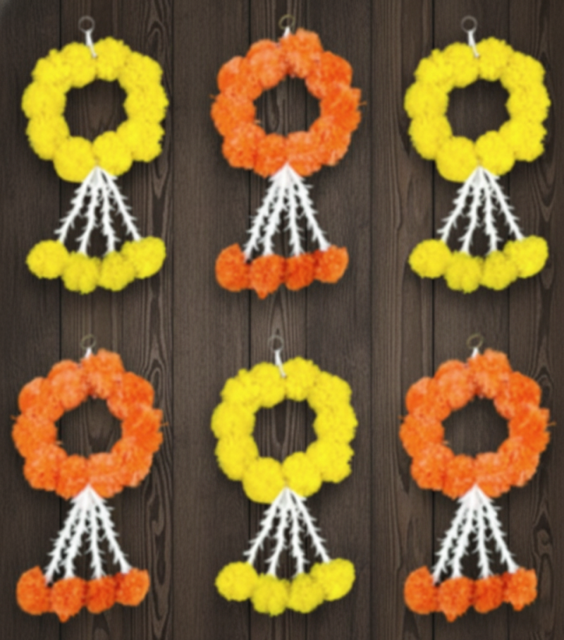 Transform your puja or decorative space with this elegantly crafted artificial flower hanging. Designed to evoke the vibrant look of fresh garlands without the maintenance, this decorative piece is perfect for doorways, windows, temple mantels, and event décor. Its versatile design fits traditional and modern interiors, making it ideal for festivals, daily worship, house‑warmings, or festive gatherings.