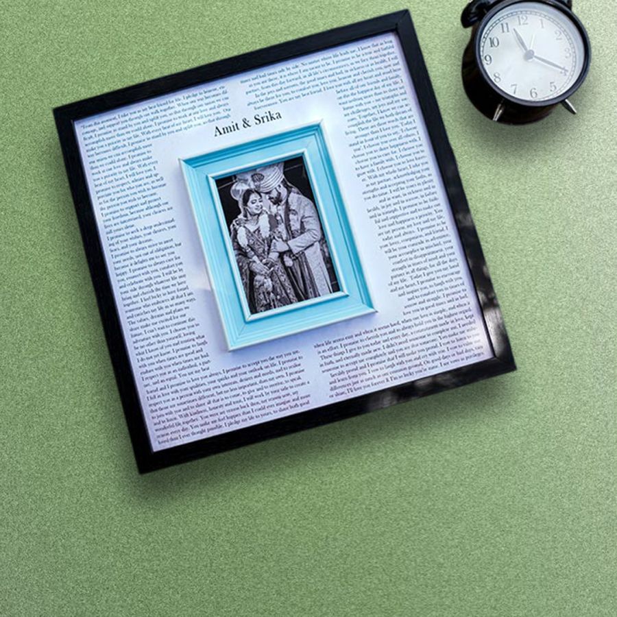 Frame in a frame, a special picture pastel frame mounted on messages/wedding vows.